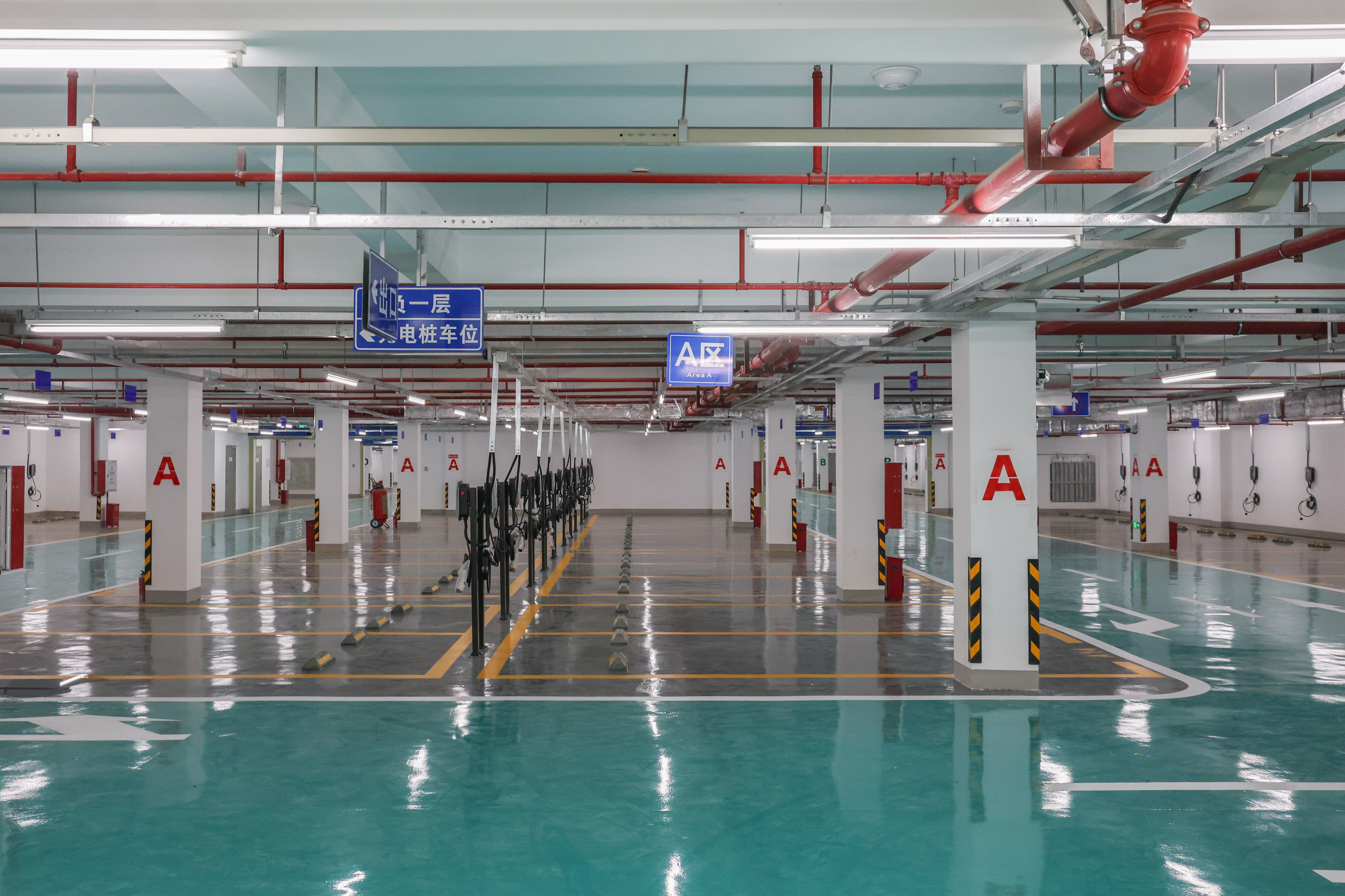 时隔数年,如今的鹤园小区不再是那个曾经的“重灾区”,新铺的沥青马路让出行更“丝滑”,废旧的足球场焕然一新——鲜橙色的跑道与绿油油的草坪是社区健康活力的底色。足球场下,共计171个车位的全新停车场即将投入使用,一众崭新的充电桩蓄能待发,将有效缓解小区违停乱停问题。