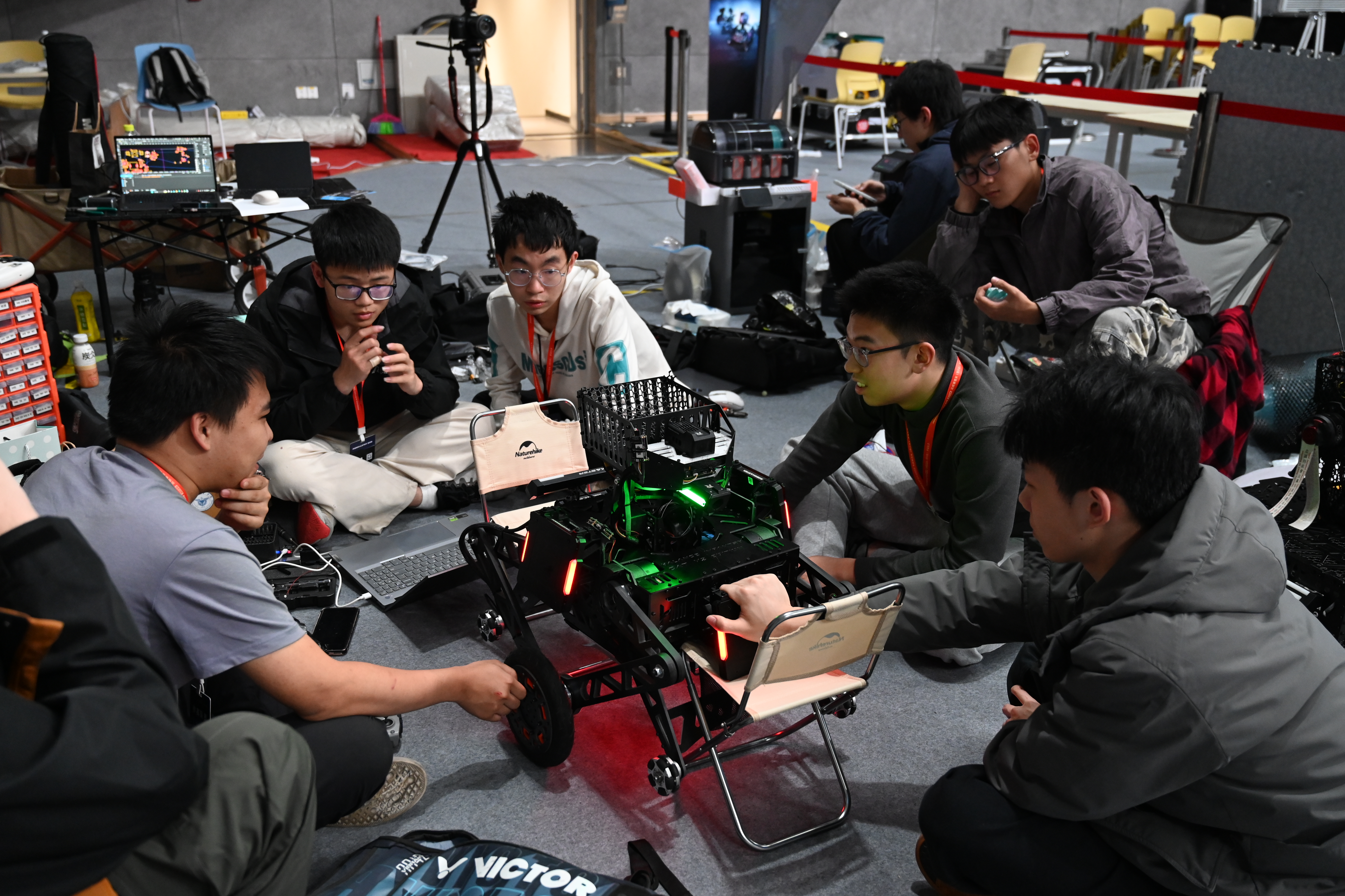 团队成员总结道:“我们分工明确、默契配合:英雄机器人凭借稳定瞄准压制对手进攻,步兵机器人则在高强度对抗中游走穿插,打乱对手节奏,合力击退对手对中央控制区的占领;补给阶段,两台机甲则相互掩护,为己方补给争取时间。”